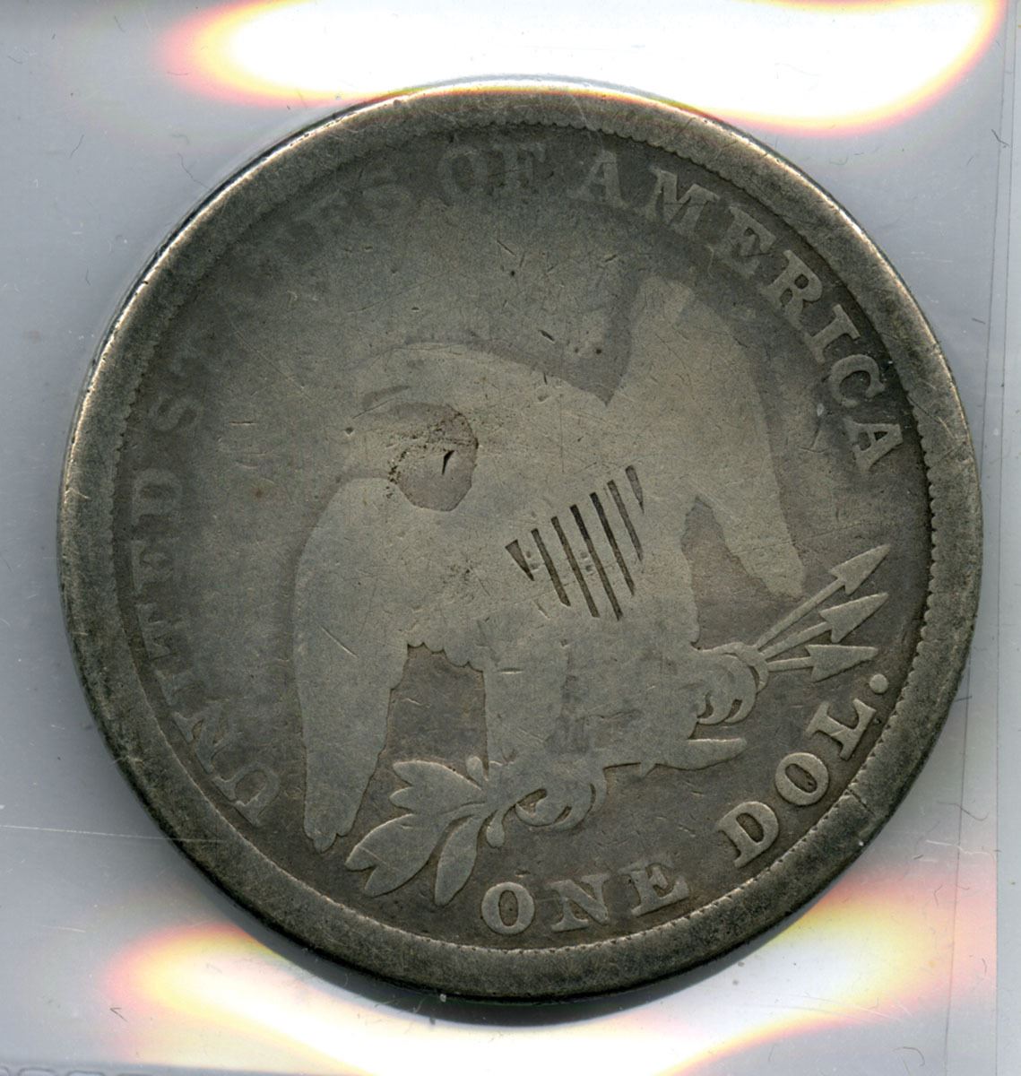 U.S.A., 1841. Seated Liberty $1 Silver Dollar featuring Liberty seated with shield and staff on the obverse and a heraldic eagle reverse. The shield looks like it may have been tooled, Struck in .900 fine silver, weighing 26.73 grams with an approximate 38 mm diameter and an actual silver weight (ASW) of 24.06 grams (0.7734 troy oz). Seated Liberty Dollars were produced from 1840 to 1873 and represent the early U.S. silver dollar series following the Gobrecht design.