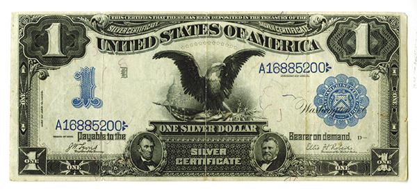 U.S. Silver Certificate, $1, Series of 1899, Black Eagle, Choice VF to XF, bright colors, sharp corners and large even margins.