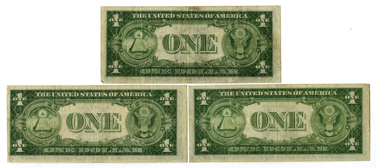 Washington D.C., Lot of 3 notes, all are Series 1935A. $1, Fr.# 2306, Issued Banknote Trio, Black print with yellow seal at right, Julian | Morgenthau Signatures, Notes range from VF to Choice VF condition. (3). Sold "AS IS" no returns accepted.
