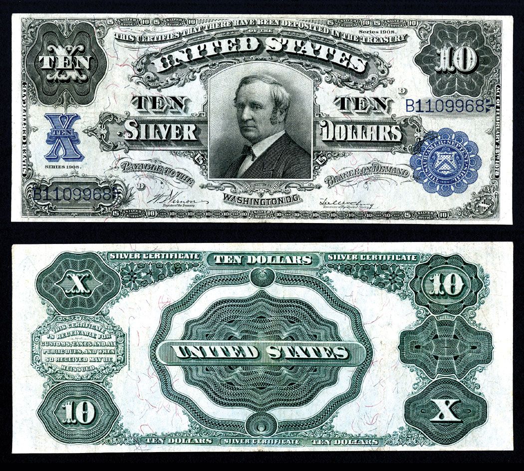 U.S., Silver Certificate, $10, Series 1908, Fr#303, VF, Attractive "Tombstone" Note.