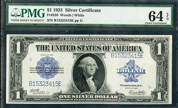 Washington, D.C., $1, Woods | White signatures, S/N B15323415E pp G, PMG Choice Uncirculated 64 EPQ.