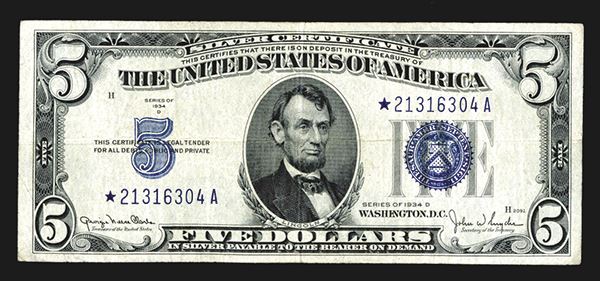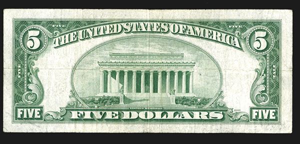 $5, S/N *21316304A, Clark-Snyder signatures, VF with large margins and excellent centering.
