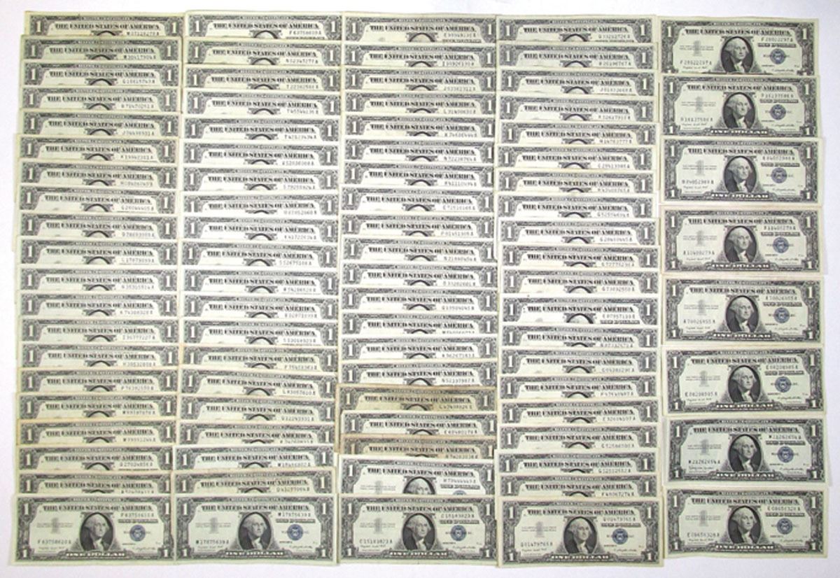 Washington, D.C., 1957. Lot of 88 Silver Certificates, Includes: $1, Series 1957A, Fr.# 1620 (76), Blue seals, Smith | Dillon signatures; $1, Series 1957B, Fr.# 1621 (12), Blue seals, Granahan | Dillon signatures. Notes range from VF to XF condition. (88).