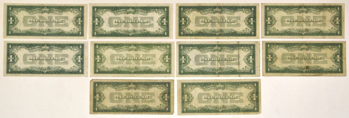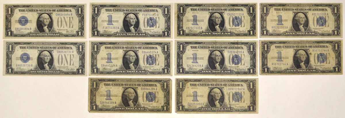 Washington D.C., 1928-34. Lot of 10 Issued Silver Certificates, Includes: $1, Series of 1928A, Fr.#1601; $1, Series 1928B, Fr.#1602; $1, Series of 1934, Fr.#1606 (8). Notes are in Fine to Choice VF condition. (10). Sold "AS IS" no returns accepted.
