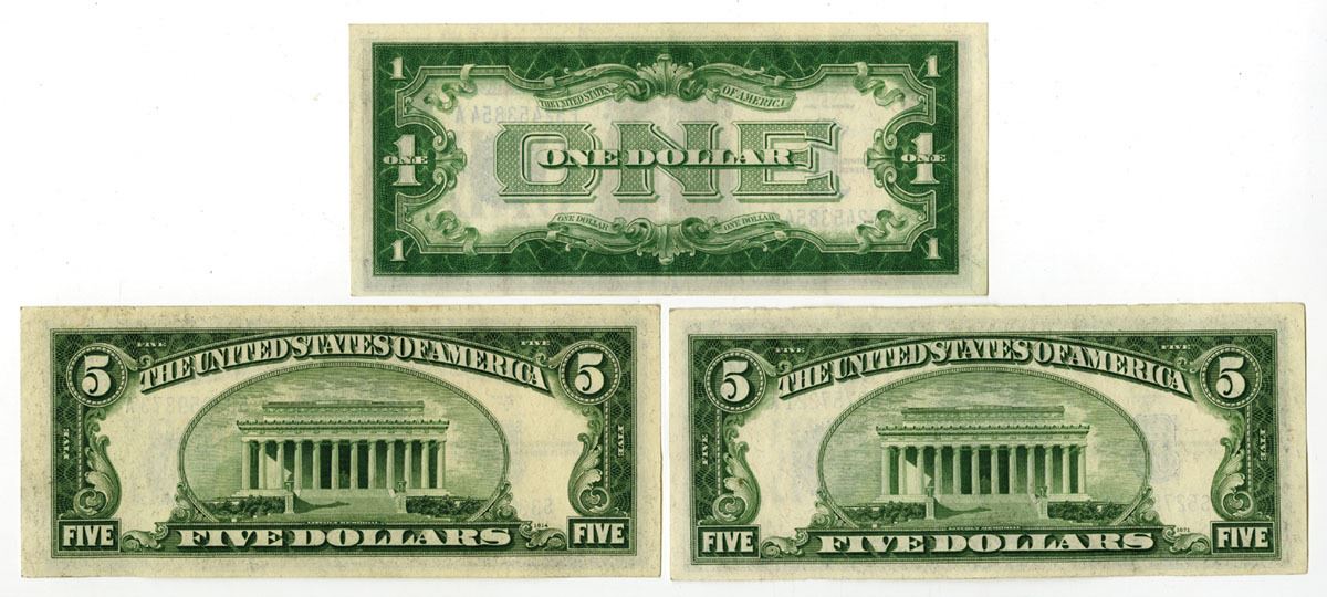 Washington D.C., 1934. Lot of 3 Issued Silver Certificates, Includes: $1, Series of 1934, Fr.# 1606, Julian | Morgenthau signatures; $5, Series of 1934D, Fr.# 1654W and Fr.# 1654N, Clarke | Snyder Signatures. Notes are in VF to XF condition. (3). Sold "AS IS" no returns accepted.