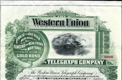 1900. $1,000. Specimen Funding and Real Estate Mortgage 4-1/2% Gold Bond. Green border. Allegorical woman in front of angel and clock. XF condition. Coupons attached. Red specimen overprints, POC's and "00000" serial numbers. Rare bond. IBNC.