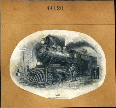 Used on Security Printed documents, stocks and bonds.ca.1860's-90's. 14 different proof vignettes of various trains at stations, traveling and in various settings. All are printed by ABNC. The vignettes range from 2 to 5 inches in size. All are printed on india paper and mounted on manila card with plate number at top of the card and on the india paper. Condition ranges from Fine to choice condition. Please inspect. Rare railroad group. ABNC.