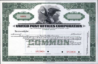 1920-30's. Odd Shs. Specimen stock certificate. Red "Specimen" overprints, "00000" serial numbers and POC's. XF condition. Vignette of eagle. FL-ABNC.