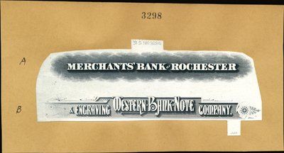 ca.1880-1890's. Proof title of WBNC and Merchants' Bank of Rochester on compound proof mounted on manila card. Unique in archive. Choice condition. WBNC.