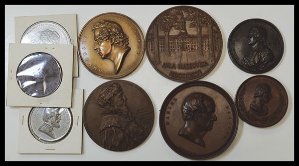 U.S & Worldwide Medals. Lot of 9 bronze and silver colored medals. Includes Daniel Webster, ca. 1870-80; 1888 Austin Texas Capital Dedication; Nataniel Green ca.1870-80; 1890, Chicago, Woman's Christian Temperance Building; England, 1864, Garibaldi with "Welcome to England - 1864" on the back and many others, weight approximately 2.5 lbs.