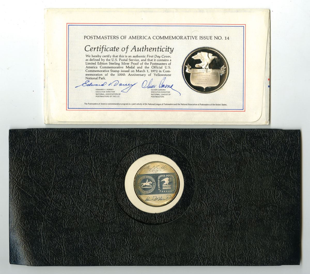 U.S., 1971-72. Lot of 2 Limited Edition Proof sterling silver commemorative medals, Includes: One cover commemorates the John Hanson Bicentennial with a U.S. 8¢ stamp cancelled “May 9, 1972 – First Day of Issue,” while the second marks the fiftieth anniversary of the United States Postal Service with patriotic stamps cancelled July 1, 1971 in Philadelphia and Washington, D.C. Medals are struck in sterling silver (.925 fineness) with proof surfaces, each weighing approximately 20 grams. Total weight for the lot is approximately 40 grams, with an actual silver weight (ASW) of approximately 18.5 grams per medal, or about 37 grams total (1.19 troy oz). Items remain housed in their original commemorative postal covers and presentation holder. (2). Sold “AS IS” no returns accepted.