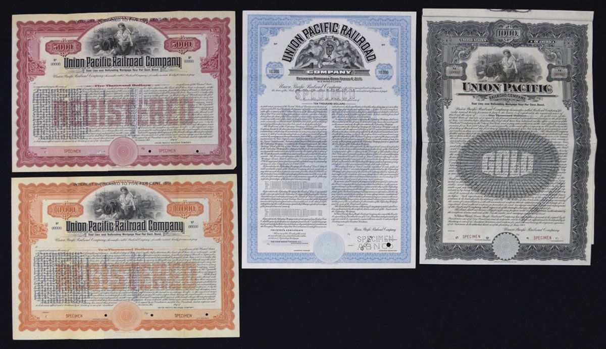 Utah, 1908-83. Lot of 4 Specimen Bonds, Includes: $1000 4% Coupon Bond, 1908; $5000 Registered 4% Bond, 1908; $10,000 Registered 4% Bond, 1908; $10,000 Registered 2 1/2% Bond, 1983. Bonds are marked Specimen by either overprints and POCs, Bonds range from XF+ to AU condition. (4). Sold "AS IS" no returns accepted. All of the bonds are rare with only 2 to 4 examples of each found in the ABN Archives