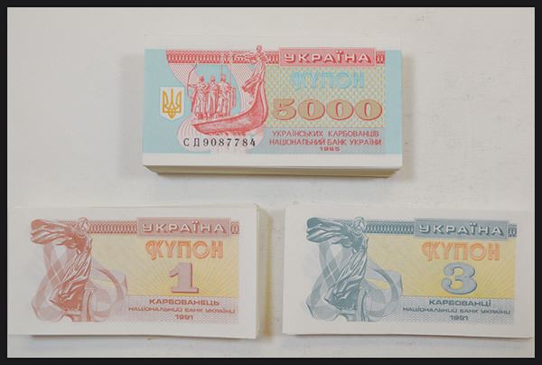 Ukraine. 1, 3, 5000 Karbovantsiv; P-81a, 82a, 93a, 93b. Generally Extremely Fine or better. Over 300 pieces total.