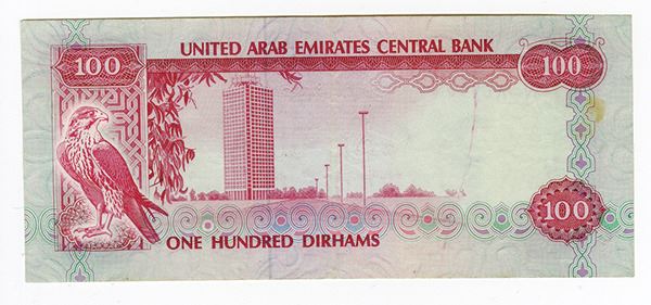 United Arab Emirates. 100 Dirhams. P-10a. Fort at left, Dubai trade center on back. Nice Very Fine.