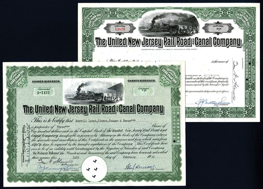 NJ, 1957/ 1961, Cert # 3879/1423, (2) Certificates of Issued and Punch Cancelled Common Stock Certificate, VF