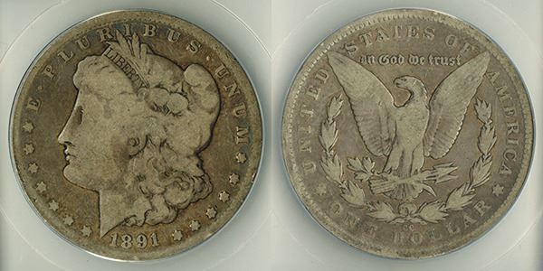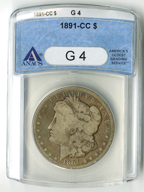 Silver Dollar, 1891 CC, KM# 110, ANACS graded G4, tough better date with low mintage.