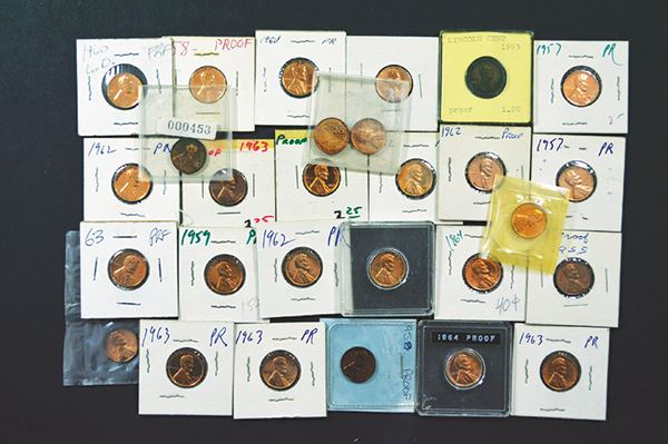 United States. Lincoln Cents: 1955; 1957 (4); 1958 (2); 1959 (2); 1960 (2); 1961; 1962 (6); 1963 (6); 1964 (2). Proof. Many with spots, tone, fog. 2 additional with brown tone and verdigris. 28 pieces.