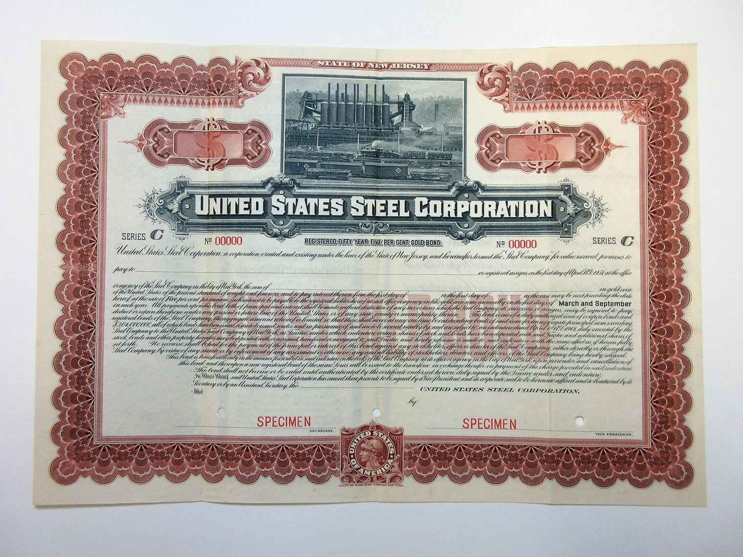 New Jersey. $-Odd Registered 5% Specimen Fifty Year Gold Bond, Black print on brown border and under tint on horizontal format, Photograph of industrial plant at top, Specimen overprints and POC's, VF-XF condition, ABNC.