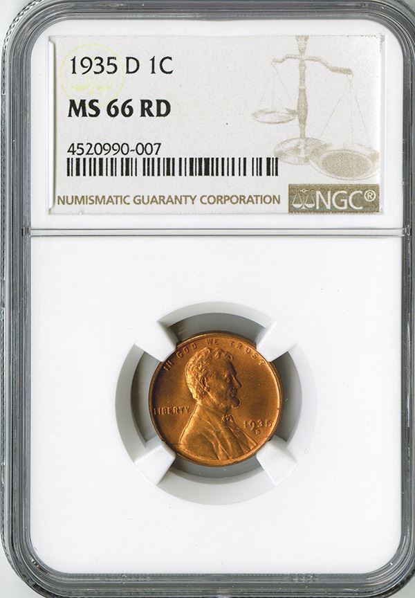 1 Cent, 1935 D, KM# 132, NGC graded MS 66 RD.
