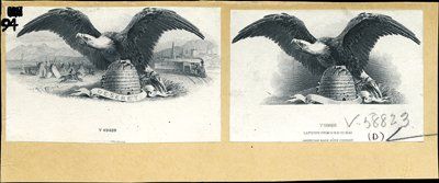 ca.1870-80's. $0. 2 different spreadwing eagles on beehive. One with "Deseret" overprint and one without. Rare Mormon related vignettes. ABNC