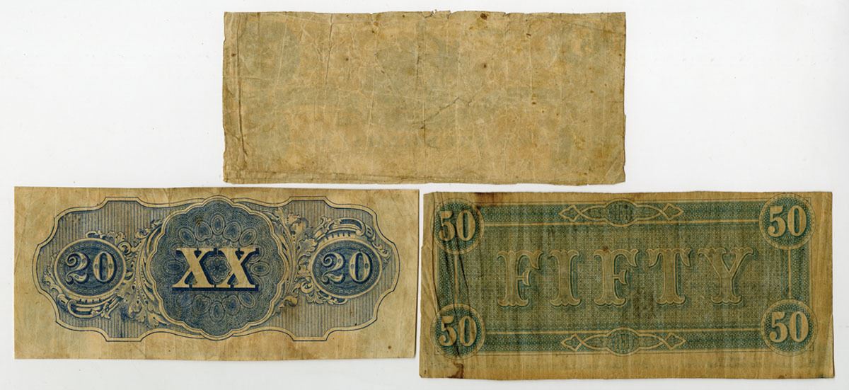 Richmond, Virginia, 1861-1864. Lot of 3 Issued Banknotes, Includes: September 2, 1861, $5, P-19c, SL#19, T-36, S/N 127122, J. T. Paterson & Co.; April 6, 1863, $20, P-61, SL#62, S/N 76863, K& B; February 17, 1864, $50, P-70, SL#71, T-66, S/N 21438, K&B. Notes range from Fine to VF+ condition. (3). Sold "AS IS" no returns accepted.