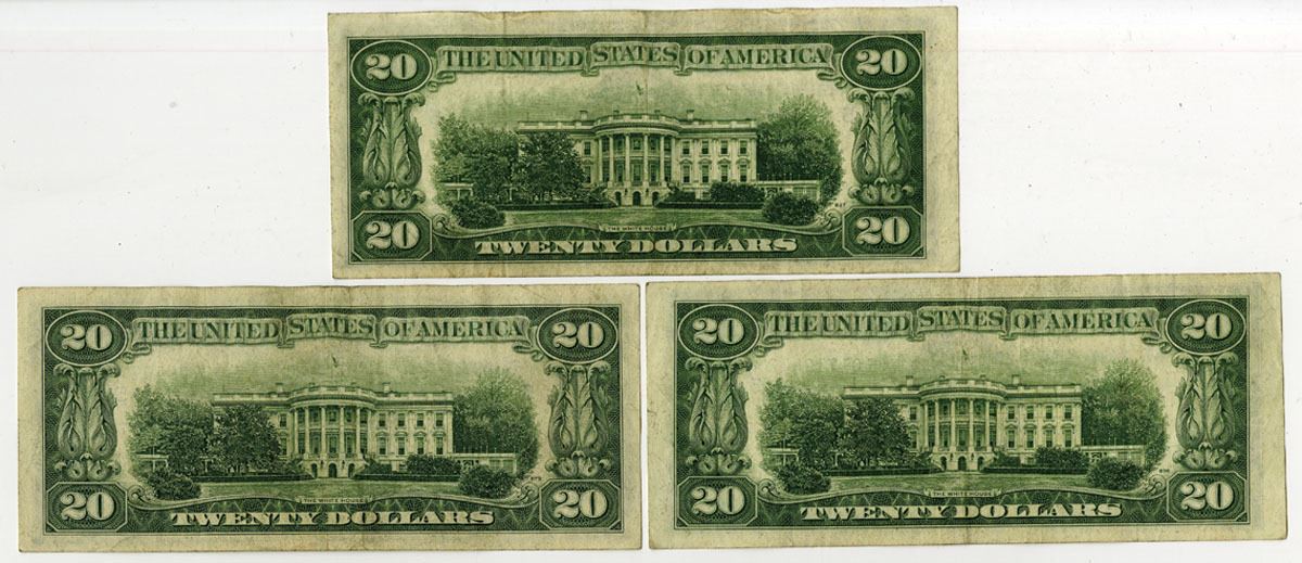Richmond, Virginia, 1950. $20, P-440a (3), Series 1950A, Fr.# 2060-E*, Issued Star Note Trio, Priest | Humphrey Signatures, Green seal at right, S/Ns E01187803* pp E107/827, E01718412* pp Q112/838, and E03799583* pp J145/879. Notes range from VF to XF condition. (3). Sold "AS IS" no returns accepted.