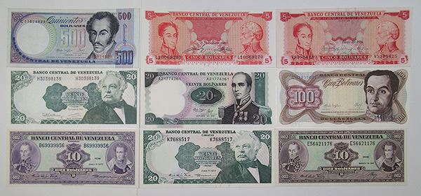 El Salvador, Venezuela, & Uruguay..... Lot includes a large group of Banco Central de Reserva de El Salvador issue 1 & 2 Colones; Banco Central de Venezuela issue 5, 10, 20, 100, and 500 Bolivares; and Banco Central del Uruguay issue 50 Centimos, 1, 5, 10, 50, 100, 1000, 5000 & 10000 Pesos. VG to Unc. Please inspect. (36)
