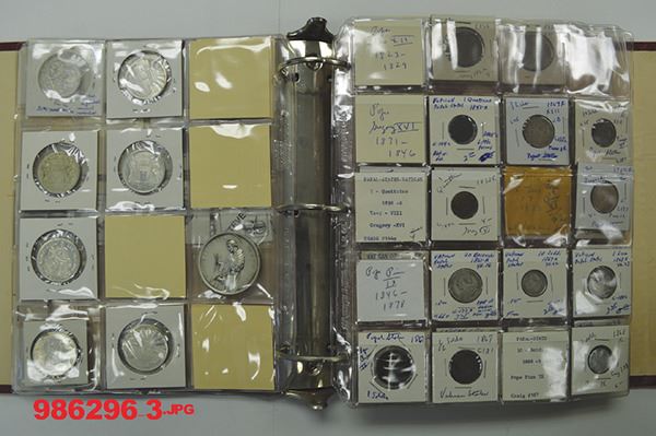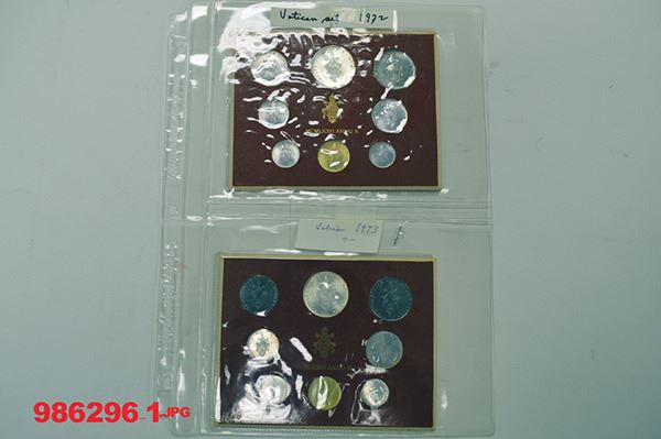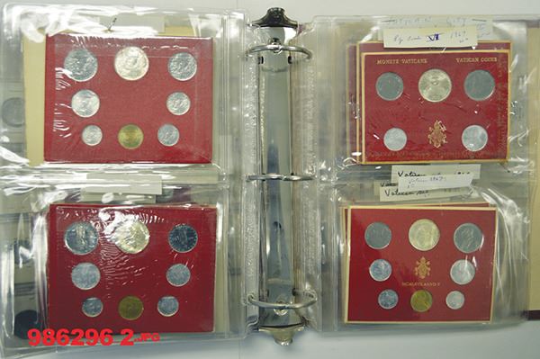 Vatican City. Includes Papal States issues 1840s-1981. Includes a smattering of Official Papal annual medals and tourist medals. The Annual Uncirculated sets in cards 1962-1981, nearly complete. Just over 240 pieces.