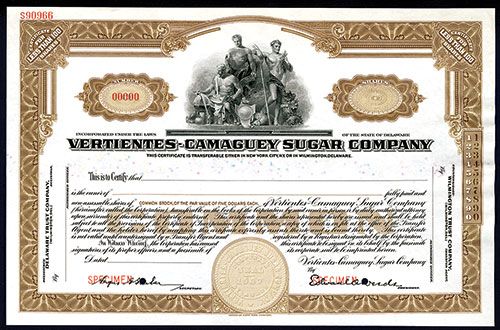 Delaware, Specimen Stock, <100 Shares, Black on brown border and underprint, POC's, VF-XF condition, ABNC.