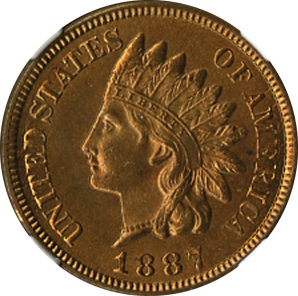 Very Choice Indian Cent. 1887 Indian Cent. NGC MS 64 RD. Very close to Gem.