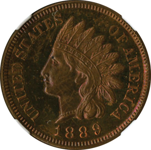Very Choice Proof Indian Cent. 1889 Indian Cent. NGC PF 64 RB. With lightly frosted devices.