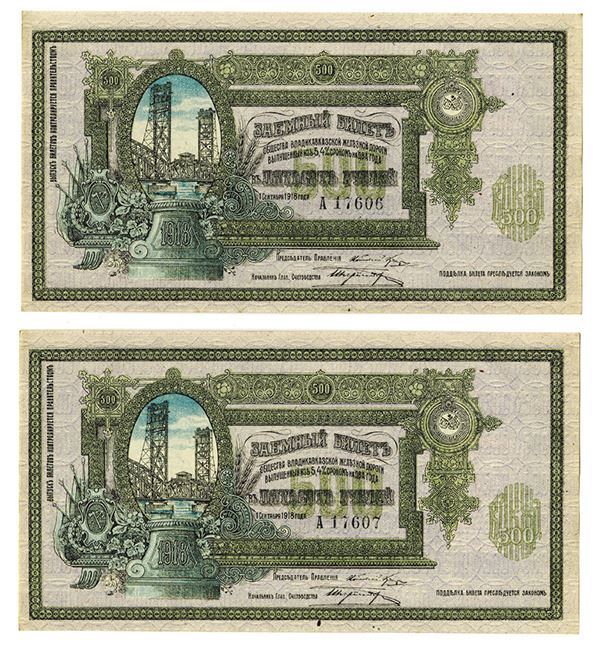 Russia. Lot of 2 sequential notes, 500 Rubles, P-S595, issued, sequential pairs, S/N's A 17606 and 17607, Notes are in Choice AU to Uncirculated condition or better. Crisp and fresh. Scarce notes.