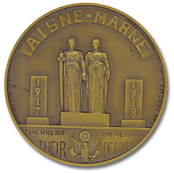 France, 1927 bronze, 50 mm. American WWI Monuments. By Ada I. Possesse. Extremely Fine.