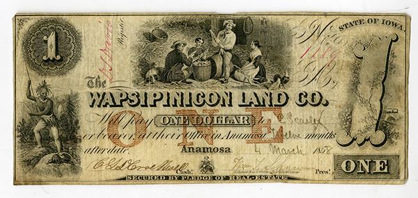 Anamosa, IA. $1, Iowa, Oakes 3-1, this post note promises to pay the bearer $1.00 twelve months after the date. WH&W, NY.