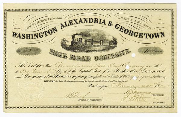 District of Columbia. 100 Shrs Stock Certificate. Issued to the Pennsylvania Railroad Co. POCs. Low # 37. Very Fine. (From the collection of John E. Herzog)