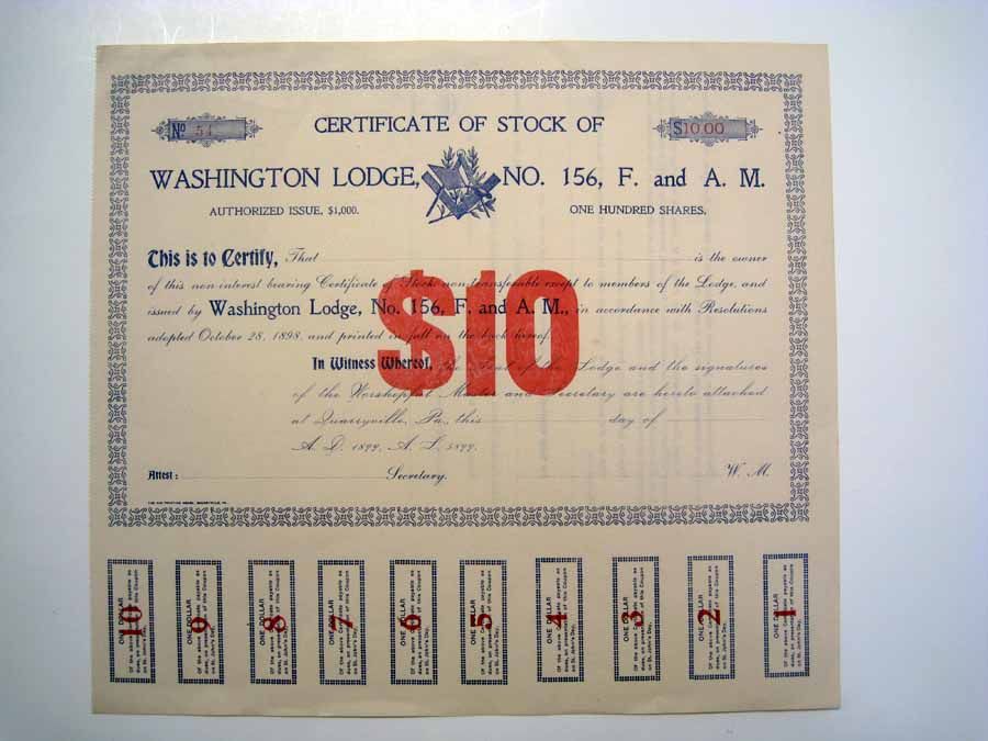 Pennsylvania, 1899, Unissued Stock, #54, 100 Shares, $1 Attached Coupons, Blue print with ornate blue border, Red $10 underprint with no vignette, VF-XF condition, Sun Printing House.