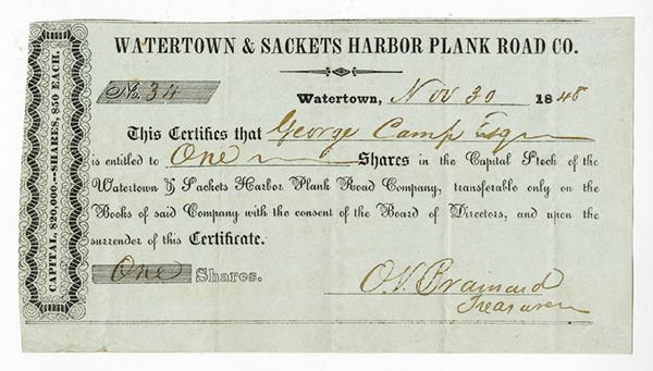 New York. 1 Share Capital Stock Issued Stock Certificate, Black print on black border printed on blue paper, Company title at top, Fine-VF condition.