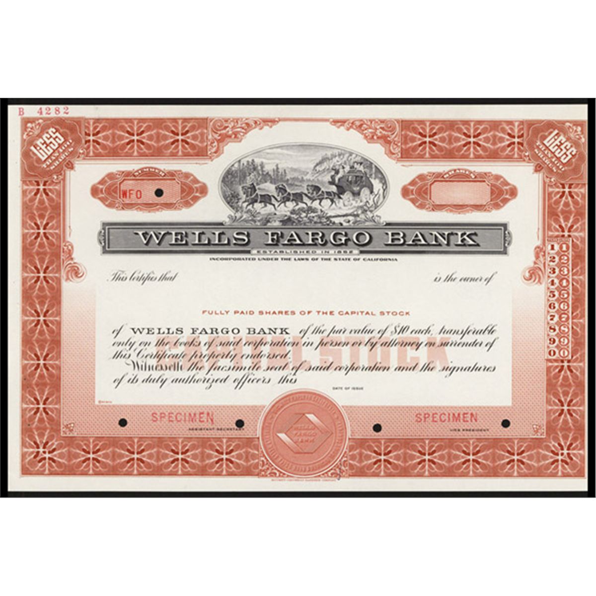 California, ND (ca.1940-50), Less Than 100 Shs, Black on brick red border and underprint, Speeding stagecoach over title, Specimen overprint and POC's, XF condition. SCBNC.