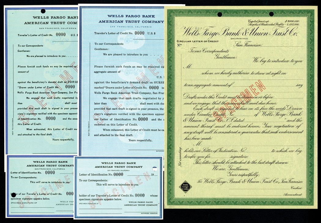San Francisco, CA. ND 9ca.1950-60's), Letter of Credit Specimens with additional letter about them. 6 pieces in lot, mostly VF-XF.