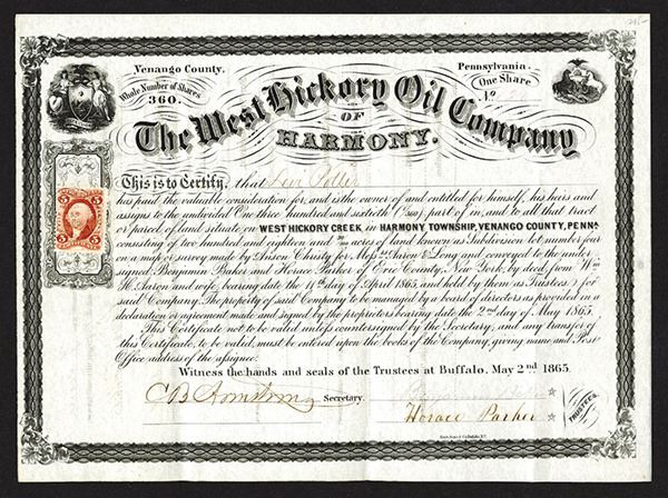 Pennsylvania. 1 Shrs Stock Certificate. Issued. Revenue stamp at left. Very Fine.