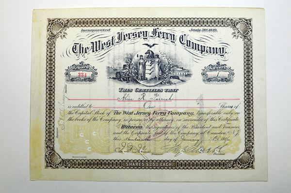 New Jersey. 1 Shrs Stock Certificate. I/C. Very Fine. Slight paper tone at left and top.