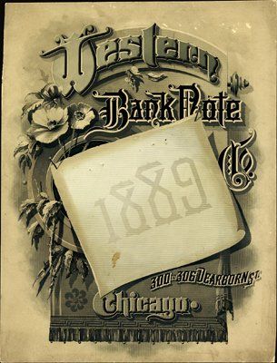 Chicago, IL. 1889. Advertising sign intaglio printed on card stock advertising the name and location of WBNC with the date 1889. Address listed for that date was 300 to 306 Dearborn St., Chicago, IL. 9 by 12 inches. There are a few little spots and rubbed areas, otherwise the sign appears VF to XF. Rare and possibly unique. The only one found in archive. WBNC.