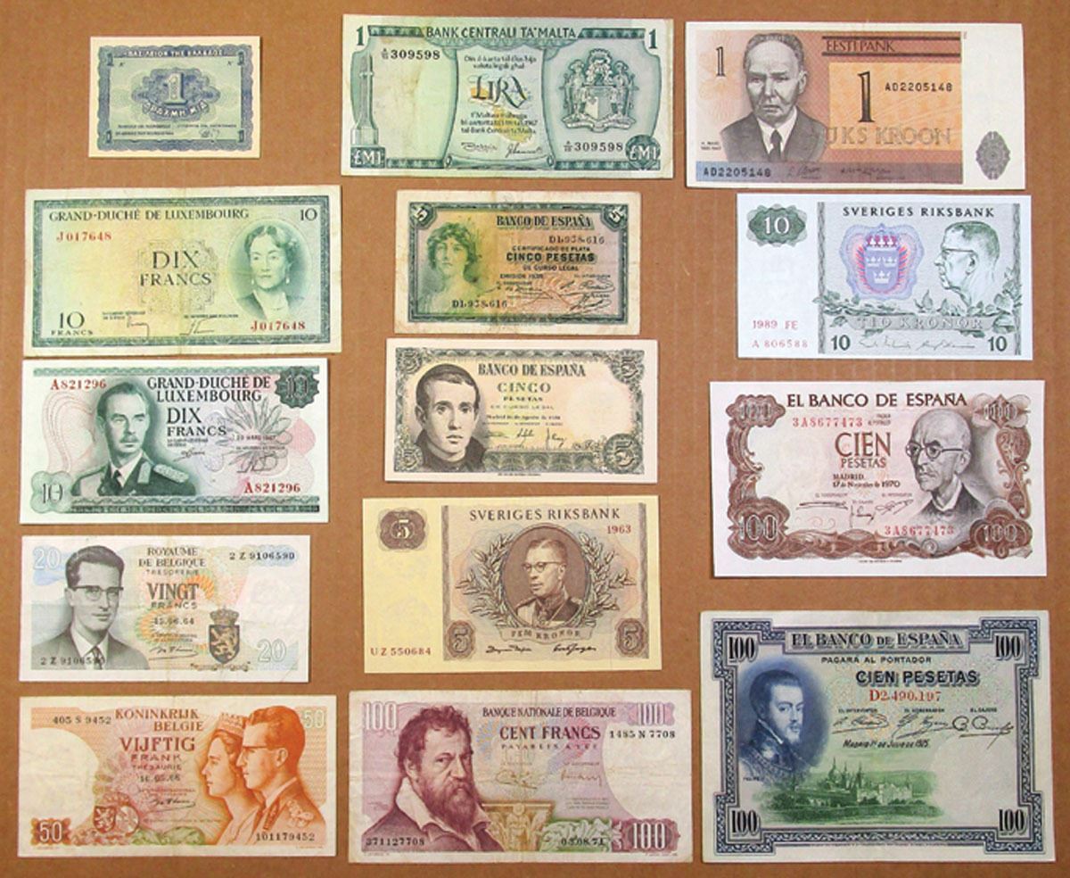 Western Europe, 1925-92. Lot of 10+ Issued Banknotes from Belgium, Greece, Sweden, Luxembourg, Malta, Estonia, and Spain. Notes range from VF to XF condition. (14).