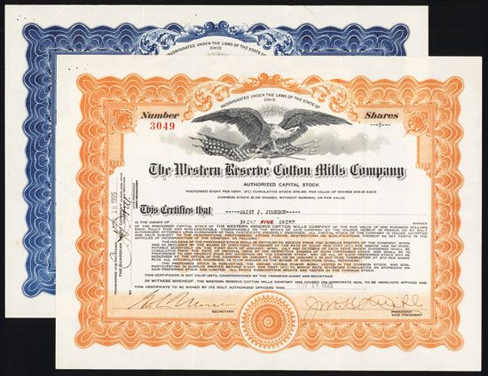 Ohio, 1925, Lot of 2 Issued and Uncancelled Stock, Black on orange and blue border and underprint, Bald Eagle clasping arrows on American flag top center, Fine condition.