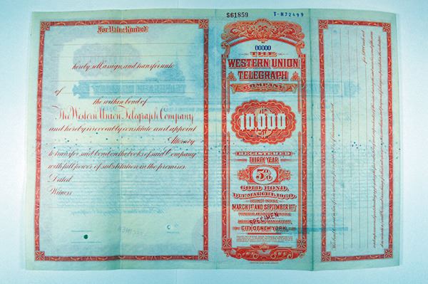 NY. $10,000 Gold Registered Bond Specimen. ABNC. VF+