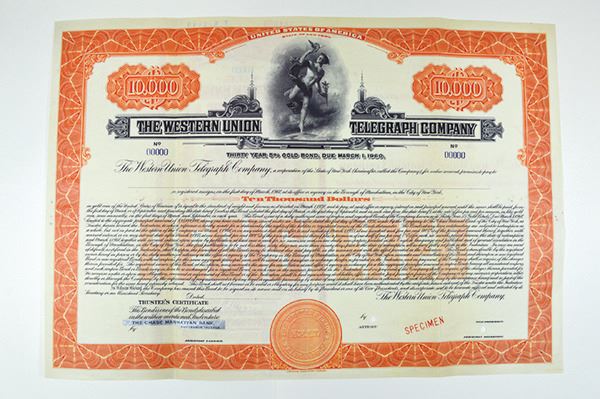NY. $10,000 Gold Registered Bond Specimen. ABNC. VF+