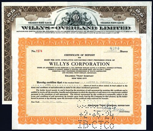 Ontario, Canada. 19xx (1920-30), 25 Shares, Specimen Stock, Company logo, VF-XF condition, British American BNC, and, 1922, 10 Shares, Issued Stock, VF condition, Republican BNC.