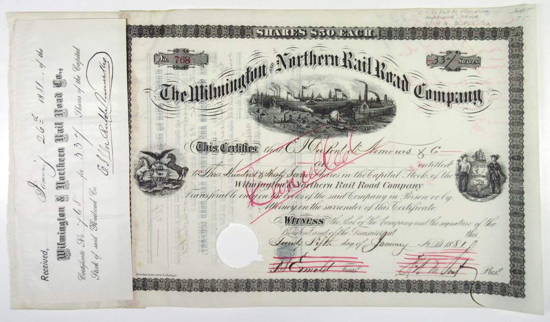 Pennsylvania & Delaware. The railroad of the Wilmington and Northern Railroad Company is a single-track line extending from Cumru Junction, near Reading, Pa., to Wilmington, Del. From the date of incorporation in 1877 to January 31, 1900, the Wilmington and Northern was operated by its own organization.