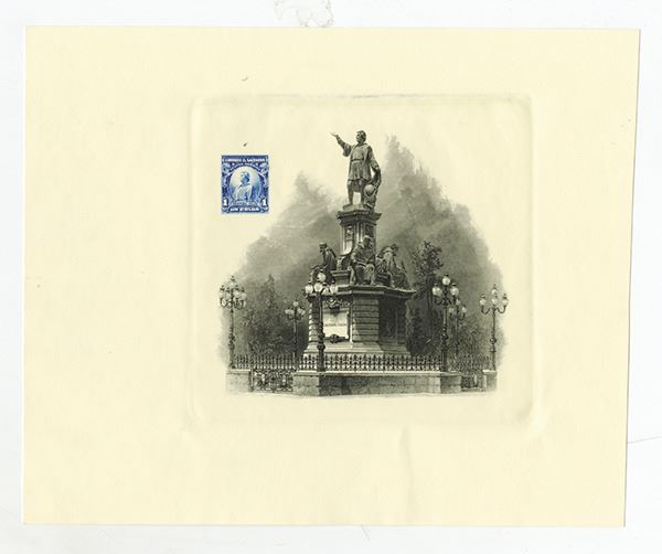 El Salvador. Lot of 3 cards, Includes 1 card with central vignette of Columbus monument located in Mexico City without any stamp; and 2 similar cards with 2 different colors of a 1 Colon El Salvador stamp proofs, one in red and the second in blue, All are in Gem Uncirculated, ABNC. (3)