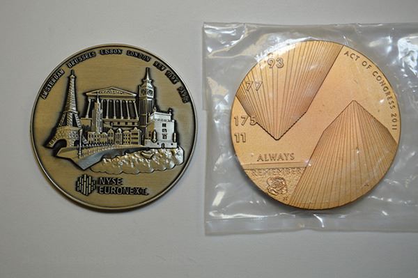 Commemorative Medal Pair. The NY Euronext coin is silver colored. Both uncirculated.